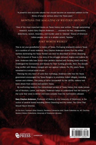 The Conquest of Texas is the story of the struggle between Anglos and Indians for land. Anderson tells how Scotch-Irish settlers clashed with farming tribes and then challenged the Comanches and Kiowas for their hunting grounds. Next, the decade-long conflict with Mexico merged with war against Indians. For fifty years Texas remained in a virtual state of war. Well illustrated with over 40 b&w illustrations and 3 maps, this book pierces the very heart of Lone Star mythology.