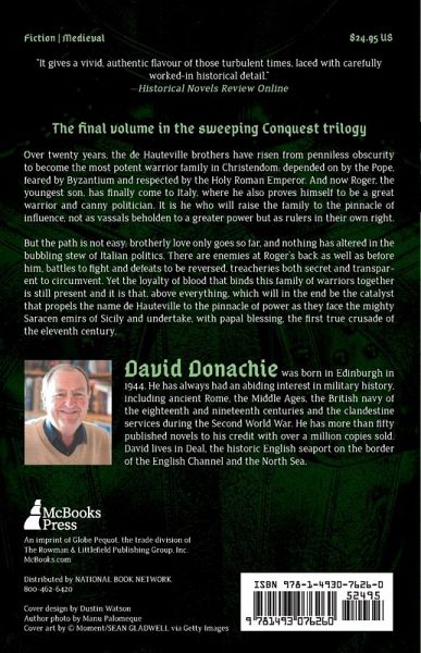 The final volume in the sweeping Conquest trilogy Over twenty years, the de Hauteville brothers have risen from penniless obscurity to become the most potent warrior family in Christendom: depended on by the Pope, feared by Byzantium, and respected by the Holy Roman Emperor. And now Roger, the youngest son, has finally come to Italy, where he also proves himself to be a great warrior and canny politician. It is he who will raise the family to the pinnacle of influence, not as vassals beholden to a greater power, but as rulers in their own right. But the path is not easy; brotherly love only goes so far and nothing has altered in the bubbling stew of Italian politics. There are enemies at Roger’s back as well as before him, battles to fight and defeats to be reversed, treacheries both secret and transparent to circumvent. Yet the loyalty of blood that binds this family of warriors together is still present and it is that, above everything, which will in the end be the catalyst that propels the name de Hauteville to the pinnacle of power as they face the mighty Saracen Emirs of Sicily and undertake, with papal blessing, the first true crusade of the eleventh century.