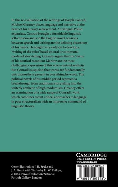 In this re-evaluation of the writings of Joseph Conrad, Michael Greaney places language and narrative at the heart of his literary achievement. A trilingual Polish expatriate, Conrad brought a formidable linguistic self-consciousness to the English novel; tensions between speech and writing are the defining obsessions of his career. He sought very early on to develop a 'writing of the voice' based on oral or communal modes of storytelling. Greaney argues that the 'yarns' of his nautical raconteur Marlow are the most challenging expression of this voice-centred aesthetic. But Conrad's suspicion that words are fundamentally untrustworthy is present in everything he wrote. The political novels of his middle period represent a breakthrough from traditional storytelling into the writerly aesthetic of high modernism. Greaney offers an examination of a wide range of Conrad's work which combines recent critical approaches to language in post-structuralism with an impressive command of linguistic theory.