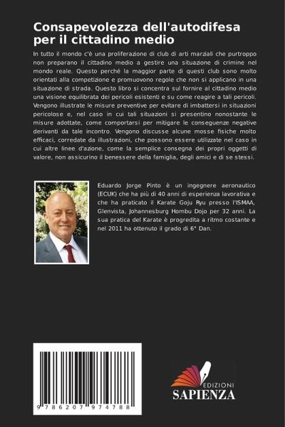 In tutto il mondo c'è una proliferazione di club di arti marziali che purtroppo non preparano il cittadino medio a gestire una situazione di crimine nel mondo reale. Questo perché la maggior parte di questi club sono molto orientati alla competizione e promuovono regole che non si applicano in una situazione di strada. Questo libro si concentra sul fornire al cittadino medio una visione equilibrata dei pericoli esistenti e su come reagire a tali pericoli. Vengono illustrate le misure preventive per evitare di imbattersi in situazioni pericolose e, nel caso in cui tali situazioni si presentino nonostante le misure adottate, come comportarsi per mitigare le conseguenze negative derivanti da tale incontro. Vengono discusse alcune mosse fisiche molto efficaci, corredate da illustrazioni, che possono essere utilizzate nel caso in cui altre linee d'azione, come la semplice consegna dei propri oggetti di valore, non assicurino il benessere della famiglia, degli amici e di se stessi.