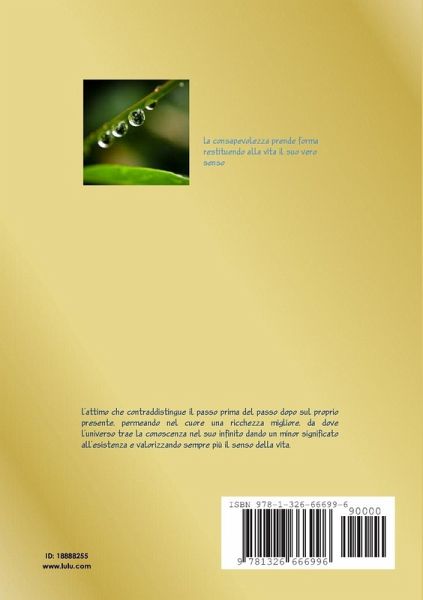 l'attimo che contraddistingue il passo prima del passo dopo sul proprio presente, permeando nel cuore una ricchezza migliore, da dove l'universo trae la conoscenza nel suo infinito dando un minor significato all'esistenza e valorizzando sempre più il senso della vita.