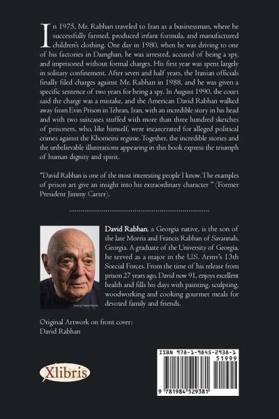In 1975, Mr. Rabhan traveled to Iran as a businessman, where he successfully farmed, produced infant formula, and manufactured children's clothing. One day in 1980, when he was driving to one of his factories in Damgitam, he was arrested, accused of being a spy, and imprisoned without formal charges. His first year was spent largely in solitary confinement. After seven and half years, the Iranian officials finally filed charges against Mr. Rabhan in 1988, and he was given a specific sentence of two years for being a spy. In August 1990, the court said the charge was a mistake, and the American David Rabhan walked away from Evin Prison in Tehran, Iran, with an incredible story in his head and with two suitcases stuffed with more than three hundred sketches of prisoners, who, like himself, were incarcerated for alleged political crimes against the Khomeini regime. Together, the incredible stories and the unbelievable illustrations appearing in this book express the triumph of human dignity and spirit. "David Rabhan is one of the most interesting people I know. The examples of prison art give an insight into his extraordinary character " (Former President Jimmy Carter).