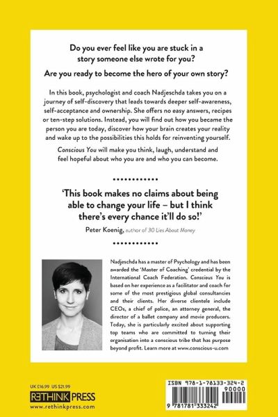 Do you ever feel like you are stuck in a story someone else wrote for you? Are you ready to become the hero of your own story? In this book, psychologist and coach Nadjeschda takes you on a journey of self-discovery that leads towards deeper self-awareness, self-acceptance and ownership. She offers no easy answers, recipes or ten-step solutions. Instead, you will find out how you became the person you are today, discover how your brain creates your reality and wake up to the possibilities this holds for reinventing yourself. Conscious You will make you think, laugh, understand and feel hopeful about who you are and who you can become.