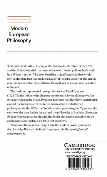 This 1991 book is a critical study of the philosophical culture of the USSR, and the first substantial treatment of a Soviet philosopher's work by a Western author. The book identifies a tradition within Soviet Marxism that has produced significant theories of the nature of the self and human activity, of the origins of value and meaning, and of the relation of thought and language. The tradition is presented through the work of Evald Ilyenkov (1924-1979), the man who did most to rejuvenate Soviet philosophy after its suppression under Stalin. Professor Bakhurst sets Ilyenkov's contribution against the background of the bitter debates that divided Soviet philosophers in the 1920s, of Vygotsky's 'socio-historical psychology', of the controversies over Lenin's legacy, and of the philosophy of Stalinism. He traces Ilyenkov's tense relationship with the Soviet philosophical establishment and his passionate polemics with Soviet opponents. This book offers a unique insight into the world of Soviet philosophy, the place of politics within it, and its prospects in the age of glasnost and perestroika.
