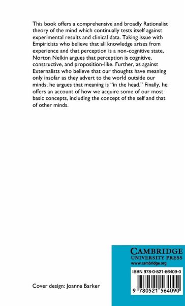 This book offers a comprehensive and broadly rationalist theory of the mind which continually tests itself against experimental results and clinical data. Taking issue with Empiricists who believe that all knowledge arises from experience and that perception is a non-cognitive state, Norton Nelkin argues that perception is cognitive, constructive and proposition-like. Further, as against Externalists who believe that our thoughts have meaning only insofar as they advert to the world outside our minds, he argues that meaning is determined 'in the head'. Finally, he offers an account of how we acquire some of our most basic concepts, including the concept of the self and that of other minds.