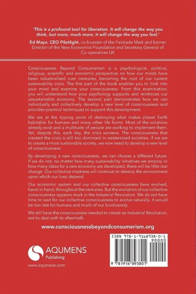 'This is a profound tool for liberation. It will change the way you think, but more, much more, it will change the way you feel.' Ed Mayo, CEO Pilotlight, co-founder of the Fairtrade Mark and former Director of the New Economics Foundation and Secretary General of Co-operatives UK We still have the consciousness needed to create an Industrial Revolution, not to deal with its aftermath. Consciousness Beyond Consumerism: A Psychological Path to Sustainability draws on psychology, religion, science, philosophy and economics to demonstrate how our consciousness has been industrialised over centuries, becoming the root of our current sustainability crisis. Part one will enable you to examine your mind and understand how your consciousness supports and reinforces our unsustainable economy. Part two demonstrates how we can individually and collectively develop a new level of consciousness, to enable sustainable living, and provides practical techniques to support this personal growth. Here's what you will learn: * The interrelatedness of our current environmental, social and psychological crises * How our consciousness causes our environmental, social and psychological crises * The degree to which your consciousness has been industrialised and how it happened * How businesses exploit our industrialised consciousness to condition us into being consumers * The nature of our unsustainable economic system and how it is maintained by consumerism * How you can develop your consciousness beyond consumerism * What different aspects of society can do to facilitate the development of our consciousness By developing a new consciousness, we can create a more sustainable society. If we do not, our consumerism will continue to destroy the environment upon which our lives depend.