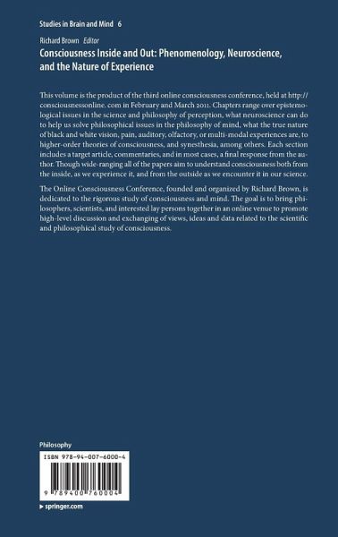 This volume is product of the third online consciousness conference, held at http://consciousnessonline.com in February and March 2011. Chapters range over epistemological issues in the science and philosophy of perception, what neuroscience can do to help us solve philosophical issues in the philosophy of mind, what the true nature of black and white vision, pain, auditory, olfactory, or multi-modal experiences are, to higher-order theories of consciousness, synesthesia, among others. Each chapter includes a target article, commentaries, and in most cases, a final response from the author. Though wide-ranging all of the papers aim to understand consciousness both from the inside, as we experience it, and from the outside as we encounter it in our science.