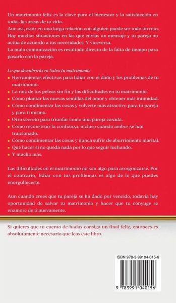 Un matrimonio feliz es la clave para el bienestar y la satisfacción en todas las áreas de tu vida. Aun así, estar en una larga relación con alguien puede ser todo un reto. Hay muchas situaciones en las que envías un mensaje y tu pareja no actúa de acuerdo a tus necesidades. Y viceversa. La mala comunicación es resultado directo de la falta de tiempo para pasarlo con la pareja. Lo que descubrirás en Consejos para el matrimonio: ¿ Herramientas efectivas para lidiar con el daño y los problemas de tu matrimonio. ¿ La raíz de tus peleas sin fin y las dificultades en tu matrimonio. ¿ Cómo plantar las nuevas semillas del amor y obtener más intimidad. ¿ Cómo condimentar las cosas y volverte más atractivo para tu pareja y para ti mismo. ¿ Otro secreto para triunfar como una pareja casada. ¿ Cómo reconstruir la confianza, incluso cuando ambos se han traicionado. ¿ Cómo condimentar las cosas y nunca sufrir de aburrimiento marital. ¿ Qué hacer si no queda nada por lo que seguir luchando. ¿ Y mucho más. Las dificultades en el matrimonio no son algo para avergonzarse. Por el contrario, lidiar con tus problemas es algo de lo que puedes enorgullecerte. Aun cuando crees que tu pareja se ha dado por vencido, todavía hay oportunidad de salvar tu matrimonio y hacer que tu cónyuge se enamore de ti nuevamente. Si quieres que tu cuento de hadas consiga un final feliz, entonces es absolutamente necesario que leas este libro.