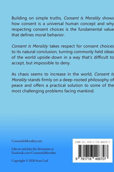 Building on simple truths, Consent Is Morality shows how consent is a universal human concept and why respecting consent choices is the fundamental value that defines moral behavior. Consent Is Morality takes respect for consent choices to its natural conclusion, turning commonly held ideas of the world upside-down in a way that's difficult to accept, but impossible to deny. As chaos seems to increase in the world, Consent Is Morality stands firmly on a deep-rooted philosophy of peace and offers a practical solution to some of the most challenging problems facing mankind.