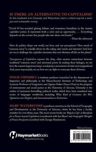 Noam Chomsky was born in Philadelphia, Pennsylvania, on December 7, 1928. He studied linguistics, mathematics, and philosophy at the University of Pennsylvania. In 1955, he received his Ph.D. from the University of Pennsylvania. Chomsky is Institute Professor (emeritus) in the Department of Linguistics and Philosophy at the Massachusetts Institute of Technology and Laureate Professor of Linguistics and Agnese Nelms Haury Chair in the Program in Environment and Social Justice at the University of Arizona. His work is widely credited with having revolutionized the field of modern linguistics. Chomsky is the author of numerous best-selling political works, which have been translated into scores of countries worldwide. Among his most recent books are Hegemony or Survival, Failed States, Who Rules the World?, Requiem for the American Dream, and What Kind of Creatures Are We? Marv Waterstone is Professor Emeritus in the School of Geography and Development at the University of Arizona, where he has been a faculty member for over 30 years. He is also the former director of the University of Arizona Graduate Interdisciplinary Program in Comparative Cultural and Literary Studies. His research and teaching focus on the Gramscian notions of hegemony and common sense, and their connections to social justice and progressive social change. His most recent books are Wageless Life: A Manifesto for a Future beyond Capitalism (University of Minnesota Press; co-authored with Ian Shaw) and Geographic Thought: A Praxis Perspective (Routledge; co-edited with George Henderson).