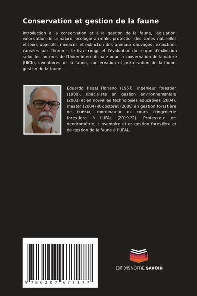 Introduction à la conservation et à la gestion de la faune, législation, valorisation de la nature, écologie animale, protection des zones naturelles et leurs objectifs, menaces et extinction des animaux sauvages, extinctions causées par l'homme, le livre rouge et l'évaluation du risque d'extinction selon les normes de l'Union internationale pour la conservation de la nature (UICN), inventaires de la faune, conservation et préservation de la faune, gestion de la faune.