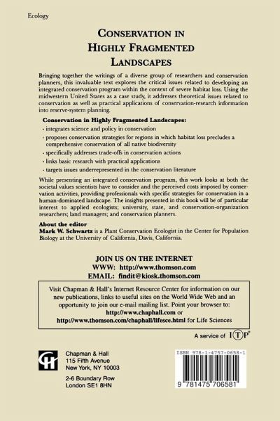 I. The Context: The Highly Fragmented Midwest.- 1. Forest Communities of the Midwestern United States.- 2. Savanna and Open-Woodland Communities.- 3. The Tallgrass Prairie Mosaic.- 4. Wetlands in the Midwest with Special Reference to Illinois.- II. Problems and Case Studies.- 5. Conservation in the Context of Non-Indigenous Species.- 6. Native Pests: The Impact of Deer in Highly Fragmented Habitats.- 7. Mammals of Illinois and the Midwest: Ecological and Conservation Issues for Human-Dominated Landscapes.- 8. Effectiveness of Small Nature Preserves for Breeding Birds.- 9. Impacts of Fragmentation on Midwestern Aquatic Organisms.- 10. Midwestern Fire Management: Prescribing a National Process in an Unnatural Landscape.- 11. Community Succession, Diversity, and Disturbance in the Central Hardwood Forest.- 12. The Biogeography of and Habitat Loss on Hill Prairies.- 13. Fragmentation and the Role of Seed Banks in Promoting Persistence in Isolated Populations of Collinsia verra.- 14. Effects of Livestock Grazing on Forest Habitats.- III. Conservation Strategies in Action.- 15. Terrestrial Nature Reserve Design at the Urban/Rural Interface.- 16. The Value of Small Preserves in Chronically Fragmented Landscapes.- 17. Nature Preserves, Natural Areas, and the Conservation of Endangered and Threatened Species in Illinois.- 18. An Aid to Conservation Strategy in Illinois: The Critical Trends Assessment Project.- 19. The History of Natural Areas Programs in Wisconsin.