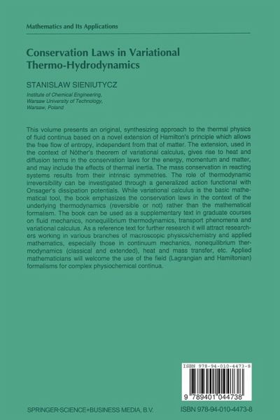 This study is one of the first attempts to bridge the theoretical models of variational dynamics of perfect fluids and some practical approaches worked out in chemical and mechanical engineering in the field newly called thermo-hydrodynamics. In recent years, applied mathematicians and theoretical physicists have made significant progress in formulating analytical tools to describe fluid dynamics through variational methods. These tools are much loved by theoretists, and rightly so, because they are quite powerful and beautiful theoretical tools. Chemists, physicists and engineers, however, are limited in their ability to use these tools, because presently they are applicable only to "perfect fluids" (i. e. those fluids without viscosity, heat transfer, diffusion and chemical reactions). To be useful, a model must take into account important transport and rate phenomena, which are inherent to real fluid behavior and which cannot be ignored. This monograph serves to provide the beginnings of a means by which to extend the mathematical analyses to include the basic effects of thermo-hydrodynamics. In large part a research report, this study uses variational calculus as a basic theoretical tool, without undo compromise to the integrity of the mathematical analyses, while emphasizing the conservation laws of real fluids in the context of underlying thermodynamics --reversible or irreversible. The approach of this monograph is a new generalizing approach, based on Nother's theorem and variational calculus, which leads to the energy-momentum tensor and the related conservation or balance equations in fluids.
