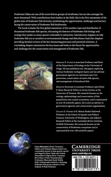 Freshwater fish are one of the most diverse groups of vertebrates, but are also amongst the most threatened. With contributions from leaders in the field, this is the first assessment of the global state of freshwater fish diversity, synthesising the opportunities, challenges and barriers facing the conservation of freshwater fish biodiversity. The book includes the first global assessment of the number, type and distribution of threatened freshwater fish species, discussing the features of freshwater fish biology and ecology that render so many species vulnerable to extinction. Introductory chapters on why freshwater fish are so sensitive to environmental change and disturbance lead into chapters providing detailed reviews of the key threatening processes and potential solutions. A concluding chapter summarises the key issues and looks to the future for opportunities and challenges for the conservation and management of freshwater fish.