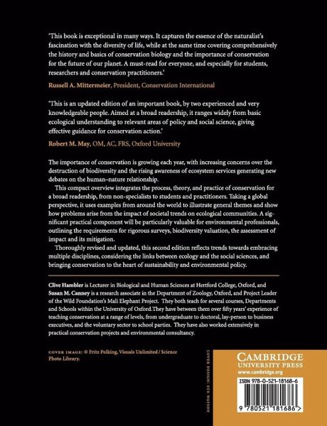 Using examples from around the world, this compact overview integrates the process, theory and practice of conservation. Greatly revised and updated, this second edition reflects recent trends towards multidisciplinarity and emphasises the broader picture of conservation, showing how general themes, patterns and drivers come together at local levels.