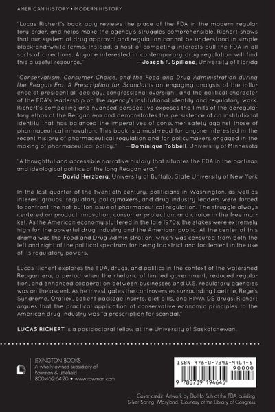 In the last quarter of the 20th century, politicians in Washington, as well as interest groups, regulatory policy makers, and drug industry leaders were forced to confront the hot-button issue of pharmaceutical regulation. The struggle always centered on product innovation, consumer protection, and choice in the free market. As the American economy stuttered in the late 1970s, the stakes were extremely high for the powerful drug industry and the American public. At the center of this drama was the Food and Drug Administration, which was censured from both the left and right of the political spectrum for being too strict and too lenient in the application of its regulatory powers. Lucas Richert explores the FDA, drugs, and politics in the context of the watershed Reagan era, a period when the rhetoric of limited government, reduced regulation, and enhanced cooperation between businesses and U.S. regulatory agencies was on the ascent. As he investigates the controversies surrounding Laetrile, Reye's Syndrome, Oraflex, patient package inserts, diet pills, and HIV/AIDS drugs, Richert argues that the practical application of conservative economic principles to the American drug industry was A Prescription for Scandal.