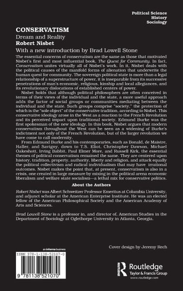 The essential concerns of conservatism are the same as those that motivated Nisbet's first and most influential book, The Quest for Community