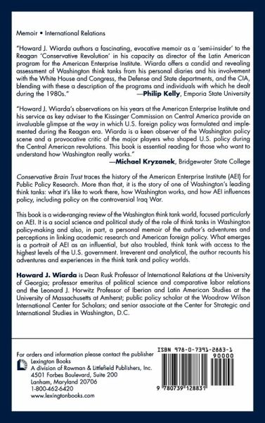 Conservative Brain Trust traces the rise, fall, and rise again of the American Enterprise Institute for Public Policy Research (AEI). More than that, it is the story of one of Washington's leading think tanks, what it's like to work there, how Washington works, and how AEI influences policy, including policy on the controversial Iraq War. The book is a social science and political study of the role of think tanks in Washington policy-making; it is also, in part, a personal memoir of the author's adventures and perceptions in seeking to link academic research and American foreign policy.