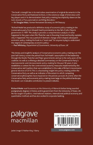 The book's strength lies in its meticulous examination of original documents in the Conservative Party and National Archives, in the extensive range of interviews with key players and in its demonstration that policy-making has implicitly drawn on the twin strands of Tory paternalism and Whig liberalism. Sir Douglas Wass, Former Permanent Secretary to HM Treasury. Richard Wade has produced a definitive study of economic policy-making in the Conservative party from Edward Heath' premiership to the fall of John Major's government in 1997. The analysis provides a comprehensive analysis of what happened in the years when Mrs Thatcher was in Downing Street and lucidly explains why it happened. This was a period of dramatic change which shaped subsequent economic policy, making the book is a 'must read' for anyone trying to understand the origins of contemporary economic policy. Paul Whiteley, Department of Government, University of Essex, UK.