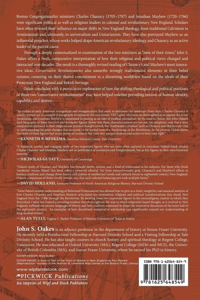 Boston Congregationalist ministers Charles Chauncy (1705-87) and Jonathan Mayhew (1720-66) were significant political as well as religious leaders in colonial and revolutionary New England. Scholars have often stressed their influence on major shifts in New England theology, from traditional Calvinism to Arminianism and, ultimately, to universalism and Unitarianism. They have also portrayed Mayhew as an influential preacher, whose works helped shape American revolutionary ideology, and Chauncy as an active leader of the patriot cause. Through a deeply contextualized re-examination of the two ministers as ""men of their times,"" John S. Oakes offers a fresh, comparative interpretation of how their religious and political views changed and interacted over decades. The result is a thoroughly revised reading of Chauncy's and Mayhew's most innovative ideas. Conservative Revolutionaries also unearths strongly traditionalist elements in their belief systems, centering on their shared commitment to a dissenting worldview based on the ideals of their Protestant New England and British heritage. Oakes concludes with a provocative exploration of how the shifting theological and political positions of these two ""conservative revolutionaries"" may have helped redefine prevailing notions of human identity, capability, and destiny.