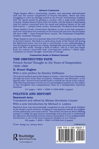 This work on the decline of French radicalism was conceived after the fall of the Berlin Wall as an essay on the decline and decay of the revolutionary idea in European politics. The theme provided an organizing principle for Roger Kaplan's analysis of the evolution of the French left in the wake of events for which it was politically and intellectually unprepared. Kaplan provides a basis for understanding the performance of a French socialist regime in power, one more uncertain of its mission than at any other time in its history. The paradox of French radicalism is that when it was out of office, it was quite certain about its mission. When it attained power, it lost its sense of mission, and hence its confidence as to the proper uses of power. "Conservative Socialism" for Kaplan is not simply an invention of the Mitterand Era, but an ideology rooted in French history. Unwilling or unable to embrace the social democratic idea of the "third way," French socialism became a force to conserve particularism in French culture and nationalism in its foreign policies. While socialism had long become a force to inhibit the rise of capitalism and freedom in France, the decline of its radicalism was inevitable. This is because in a country as conservative as France it was necessary for socialists and their assorted allies, to project a conservative image to be trusted. In France, the Left has abandoned the idea of radicalism so as to exercise power. Kaplan's unique and imaginative reading of French political history will have a profound effect on how that nation is perceived in this new epoch of the European Union. He argues persuasively and fairly that the French Left is alive if not well. The Left rose to power in France despite its policy failures, embarrassments, because it transcended the "end" to which its political dogma would have consigned it. Conservative Socialism will have a stunning impact on how political theorists view political developments in France and Europe.