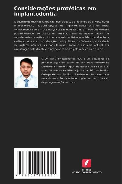 O advento de técnicas cirúrgicas melhoradas, biomateriais de enxerto novos e melhorados, múltiplas opções de implantes dentários e um maior conhecimento sobre a cicatrização óssea e de feridas em medicina dentária podem oferecer ao doente um resultado final de aspeto natural. As considerações protéticas incluem o estado físico e médico do doente, a avaliação óssea, as considerações radiográficas, os factores que a seleção do implante afectará, as considerações sobre o esquema oclusal e a manutenção pelo doente e o acompanhamento pelo médico no dia a dia.