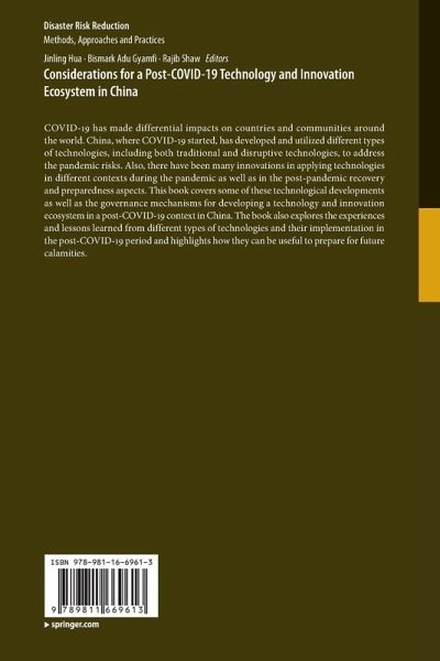 COVID-19 has made differential impacts on countries and communities around the world. China, where COVID-19 started, has developed and utilized different types of technologies, including both traditional and disruptive technologies, to address the pandemic risks. Also, there have been many innovations in applying technologies in different contexts during the pandemic as well as in the post-pandemic recovery and preparedness aspects. This book covers some of these technological developments as well as the governance mechanisms for developing a technology and innovation ecosystem in a post-COVID-19 context in China. The book also explores the experiences and lessons learned from different types of technologies and their implementation in the post-COVID-19 period and highlights how they can be useful to prepare for future calamities.