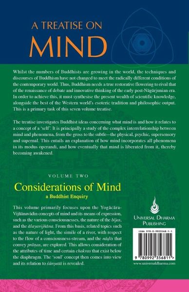 This volume primarily focuses upon the Yog¿c¿ra-Vijñ¿nav¿din concepts of mind and its means of expression such as the various consciousnesses, the nature of the b¿jas, and the ¿layavijñ¿na. From this basis, related topics such as the nature of light, the simile of a river with respect to the flow of a consciousness-stream, and the n¿¿¿s that convey pr¿¿as, are explored. This allows consideration of the attributes of time and certain chakras that exist below the diaphragm. The 'soul' concept then comes into view and its relation to ¿¿nyat¿ is revealed.