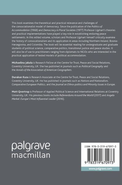 iational Power Sharing; Henry Jarrett.- Chapter 4: What politicians can teach academics: ' Real' politics, Consociationalism and the Northern Ireland Conflict; Paul Dixon.- Chapter 5: Consociation, Conditionality, and Commitment: Making Peace in Northern Ireland; Timothy J. White.- Chapter 6: Dialouge and Government Communication: Consociationalism in Northern Ireland; Charis Rice and Ian Somerville.- Chapter 7: The 2016 European Union referendum, consociationalism and the territorial constitution of the United Kingdom; Andrew Blick.- Chapter 8: Arend Lijphart and Consociationalism in Cyprus; Neophytos Loizides.- Chapter 9: The Paradox of Direct Democracy and Elite Accommodation: The Case of Switzerland; Matt Qvortrup.