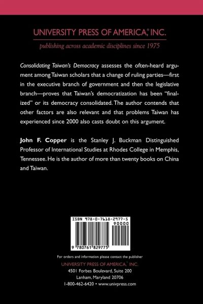 Consolidating Taiwan's Democracy assesses the argument that political change in Taiwan, in particular the recent elections that brought a change of ruling parties in both the executive branch of government and the legislative branch, proves that Taiwan's democratization has been "finalized" or consolidated. This insightful work explores both the positive and negative aspects of democracy's consolidation in Taiwan.