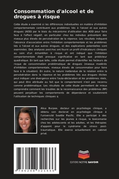 Cette étude a examiné si les différences individuelles en matière d'inhibition comportementale contribuent aux problèmes liés à l'alcool et aux autres drogues (AOD) par le biais du mécanisme d'utilisation des AOD pour faire face à l'affect négatif, en particulier chez les individus présentant des niveaux plus élevés de persévération de la réponse. Les résultats indiquent l'absence d'association entre l'inhibition comportementale et les problèmes liés à l'alcool et aux autres drogues, et des explications potentielles sont examinées. Des analyses post-hoc ont fourni un profil d'indicateurs cliniques au sein d'un échantillon à risque et ont indiqué que l'inhibition comportementale était presque significative en tant que prédicteur quadratique. En tant que telle, cette étude permet d'identifier les facteurs de risque de consommation problématique de drogues (niveaux modérés d'inhibition comportementale, niveaux élevés de consommation pour faire face à la situation). En outre, la nature inattendue de la relation entre la persévération dans la réponse et les problèmes liés aux drogues illicites peut indiquer une divergence entre l'auto-déclaration et les problèmes réels, qui peut être attribuée au fait que le comportement n'est pas reconnu comme problématique. Les résultats de cette étude permettent de mieux comprendre comment les troubles de la reconnaissance des problèmes (RP) peuvent perpétuer les comportements de dépendance et soutiennent l'utilisation de techniques cliniques q