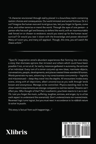 "A character envisioned through reality placed in a boundless realm containing realistic choices and consequences. Our world mirrored and turned fictitious. Or is it not? Imagine the human race and its religious ties, lest you forget its figures, come alive, and either terrorize or mend the world. Through the eyes of one person-- a person who has such gall and bravery to defend the world; with an insurmountable task forced on or chosen to endeavor, would you stand up for the human races' survival? Or would you tear it down with the knowledge and power obtained? Many will scorn you, and many will applaud. Though, this time, you will watch the chaos unfold."