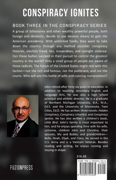 A group of billionaires and other wealthy powerful people, both foreign and domestic, decide to use devious means to gain the American presidency. With unlimited funds, they want to take down the country through any method possible: conspiracy theories, election fraud, lies, innuendoes, and outright violence. Can these bullies succeed in their pursuit to control the greatest country in the world? Only a small group of people are aware of these radicals. The future of the United States might rest with this faction-not the rich and famous, not the politicians, and not the courts. Who will win this battle of wills and cunning manipulation?