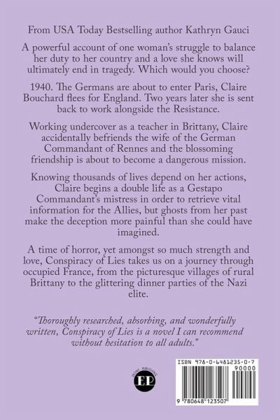 From the author of The Embroiderer comes a powerful account of one woman’s struggle to balance her duty to her country and a love she knows will ultimately end in tragedy. 1940. With the Germans about to enter Paris, Claire Bouchard flees France for England. Two years later she is recruited by the Special Operations Executive and sent back into occupied France to work alongside the Resistance. Working undercover as a teacher in Brittany, Claire accidentally befriends the wife of the German Commandant of Rennes and the blossoming friendship is about to become a dangerous mission. Knowing that thousands of lives depended on her actions, Claire begins a double life as a Gestapo Commandant’s mistress in order to retrieve vital information for the Allied invasion of France, but ghosts from her past make the deception more painful than she could have imagined. Part historical, part romance and part thriller, Conspiracy of Lies takes us on a journey through occupied France, from the picturesque villages of rural Brittany to the glittering dinner parties of the Nazi elite, in a story of courage, heartbreak and secrecy.