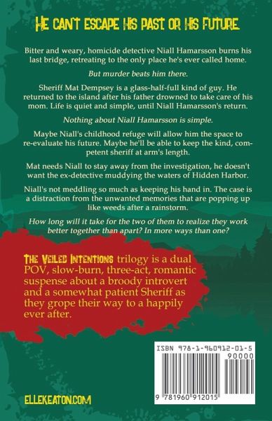 He can't escape his past--or his future. Bitter and weary, homicide detective Niall Hamarsson burns his last bridge, retreating to the only place he's ever called home. But murder beats him there. Sheriff Mat Dempsey is a glass-half-full kind of guy. He returned to the island after his father drowned to take care of his mom. Life is quiet and simple, until Niall Hamarsson's return. Nothing about Niall Hamarsson is simple. Maybe Niall's childhood refuge will allow him the space to re-evaluate his future. Maybe he'll be able to keep the kind, competent sheriff at arm's length. Mat needs Niall to stay away from the investigation, he doesn't want the ex-detective muddying the waters of Hidden Harbor. Niall's not meddling so much as keeping his hand in. The case is a distraction from the unwanted memories that are popping up like weeds after a rainstorm. How long will it take for the two of them to realize they work better together than apart? In more ways than one? The Veiled Intentions trilogy is a dual POV, slow-burn, three-act, romantic suspense about a broody introvert and a somewhat patient Sheriff as they grope their way to a happily ever after.