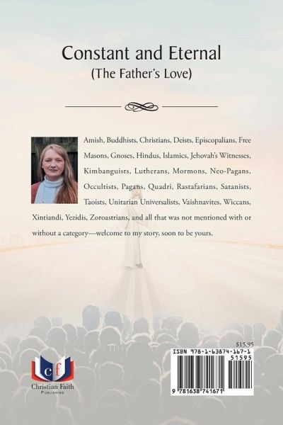 Amish, Buddhists, Christians, Deists, Episcopalians, Free Masons, Gnoses, Hindus, Islamics, Jehovah's Witnesses, Kimbanguists, Lutherans, Mormons, Neo-Pagans, Occultists, Pagans, Quadri, Rastafarians, Satanists, Taoists, Unitarian Universalists, Vaishnavites, Wiccans, Xintiandi, Yezidis, Zoroastrians, and all that was not mentioned with or without a category-welcome to my story, soon to be yours.