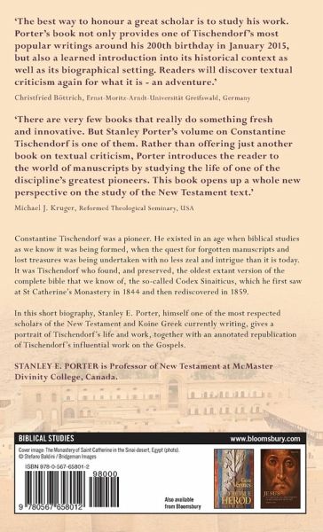 Constantin von Tischendorf was a pioneer. He existed in an age when biblical studies as we know it was being formed, when the quest for forgotten manuscripts and lost treasures was being undertaken with no less zeal and intrigue than it is today. It was Tischendorf who found, and preserved, the oldest extant version of the complete bible that we know of, the so-called Codex Sinaiticus, which he discovered in poor condition at St Catherine's Monastery at the foot of Mount Sinai, in 1846. With the discovery of the Codex Tischendorf, and others, was to take the study of biblical texts further than ever before, through linguistic methods, and attention to the most ancient sources available. In many ways Tischendorf was a father figure of the modern Historical Critical Method. In this short biography, Stanley E. Porter, himself one of the most respected scholars of the New Testament and Koine Greek currently writing, gives a portrait of Tischendorf's life and work, together with an annotated republication of Tischendorf's influential work on the Gospels. Published to celebrate Tischendorf's bicentenary, in 2015, this volume will be a must for those seeking to understand how the study of biblical manuscripts began, and to understand the man who discovered the oldest version of the bible as we know it.