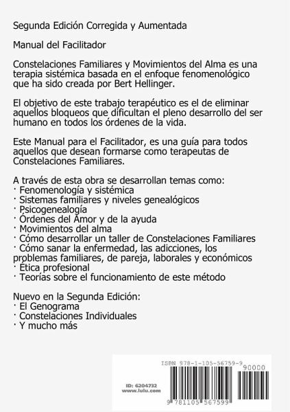Segunda Edición corregida y aumentada. Constelaciones Familiares es una terapia sistémica basada en el enfoque fenomenológico que ayuda a resolver tensiones o a eliminar bloqueos que dificultan el desarrollo pleno del ser humano. Este Manual para el Facilitador es una guía para todos aquellos que desean formarse como terapeutas de Constelaciones Familiares, prestando especial atención a los aspectos teóricos y prácticos de este método.