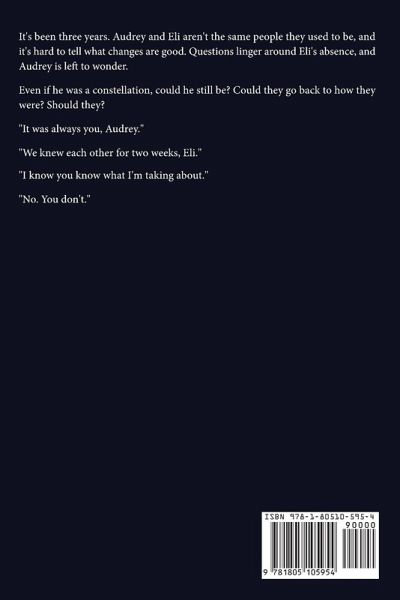 It's been three years. Audrey and Eli aren't the same people they used to be, and it's hard to tell what changes are good. Questions linger around Eli's absence, and Audrey is left to wonder.Even if he was a constellation, could he still be? Could they go back to how they were? Should they? "It was always you, Audrey.""We knew each other for two weeks, Eli.""I know you know what I'm taking about.""No. You don't."