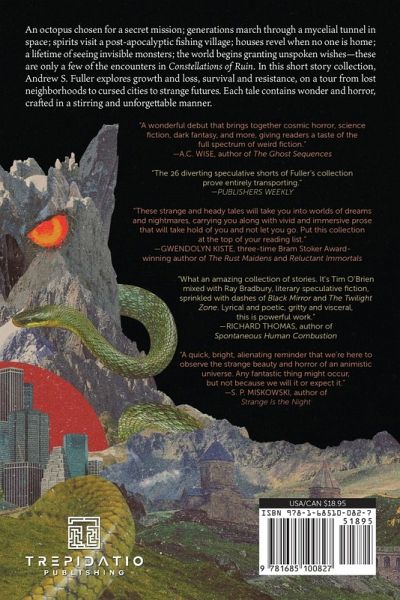 An octopus chosen for a secret mission; generations march through a mycelial tunnel in space; spirits visit a post-apocalyptic fishing village; houses revel when no one is home; a lifetime of seeing invisible monsters; the world begins granting unspoken wishes-these are only a few of the encounters in Constellations of Ruin. In this short story collection, Andrew S. Fuller explores growth and loss, survival and resistance, on a tour from lost neighborhoods to cursed cities to strange futures. Each tale contains wonder and horror, crafted in a stirring and unforgettable manner. "The 26 diverting speculative shorts of Fuller's collection prove entirely transporting." -Publishers Weekly "These strange and heady tales will take you into worlds of dreams and nightmares, carrying you along with vivid and immersive prose that will take hold of you and not let you go. Put this collection at the top of your reading list." -Gwendolyn Kiste, three-time Bram Stoker Award-winning author of The Rust Maidens and Reluctant Immortals