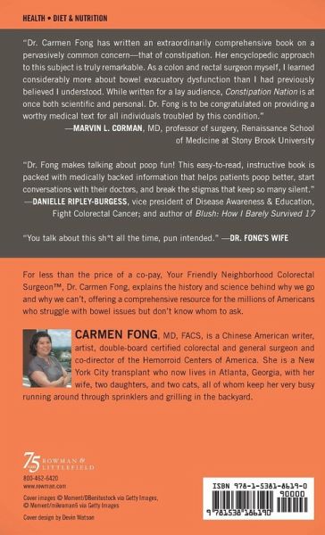 A definitive guide to the science and history of constipation across the nation. Most Americans have had constipation symptoms at some point in their lives. Statistics show up to 30% of Americans are affected with chronic constipation. This number reaches 60% as we age. At any given time up to 100 million people in the United States experience constipation. During the pandemic, constipation and its related anorectal issues worsened because everyone was sitting at home. Constipation has affected humans throughout history. Some called it "civilization's curse." Dr. John Harvey Kellogg (yes, of Kellogg's cereal fame) promoted cold cereal as a constipation cure. Today, we have more probiotics and diets than you can shake your tushy at, and social media has popularized the Blue Poop Challenge to diagnose gut health. But what does it all mean? After seeing thousands of patients in her practice as a colorectal surgeon, Dr. Fong realized that she was repeating the same information, sometimes twenty times a day. Yet, this information was not common knowledge. What was found on the Internet was confusing and conflicting, leaving people who Googled their symptoms with more questions than answers. As an academic clinician who has written peer-reviewed publications, Dr. Fong sought information beyond even what the medical textbooks taught her. Constipation Nation helps readers who would rather research information themselves before seeing a healthcare professional to troubleshoot their poop chute. Drawing from 200 evidence-based sources as well as historical texts, Dr. Fong addresses all aspects of constipation, combining medicine, physiology, anatomy, microbiology, nutrition, history, and social sciences to get to the bottom of it all to explain why we doo. and why we don't.