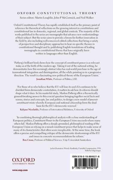 Introduction: Reclaiming Constituent Power Part I: Setting the Stage 1: Why Constituent Power? European Integration and the Problem of Usurpation 2: Public Narratives of Constituent Power in the European Union Part II: Exploring Competing Models 3: Regional-Cosmopolitan Constituent Power 4: Demoi-cratic Constituent Power 5: Dual Constituent Power 6: Destituent Power Part III: Constructing a New Theory 7: Higher-Level Constituent Power: A New Conceptual Framework 8: Citizens All the Way Down: Rethinking the Dual Constituent Subject 9: Extraordinary Partisanship: The Problem of Political Agency 10: A Permanent Constitutional Assembly: An Institutional Proposal Conclusion: Constituent Power and the Future of the European Union