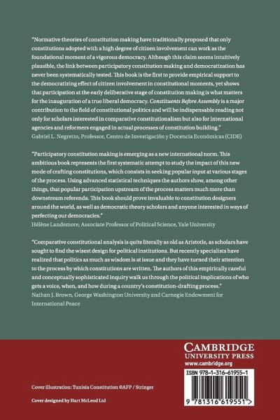 Introducing constitutions as political process; 1. A call to pens (even if not mightier than swords): how context and process prevail over content in constitutional change; 2. Making the constituents King: how constituent deliberation on new constitutions democratizes more than mere citizen participation; 3. Parchment politics: the importance of context and conditions to the convening of constitutions; 4. The logic of 'top down' elite constitutionalism: how imposed processes may (but usually do not) produce better democracy; 5. The logic of 'bottom up' constitutionalism: how popular processes tilt the odds in favor of democracy; 6. Interest groups versus individual participation, and the gap between ideal constitutional process and real world practices.