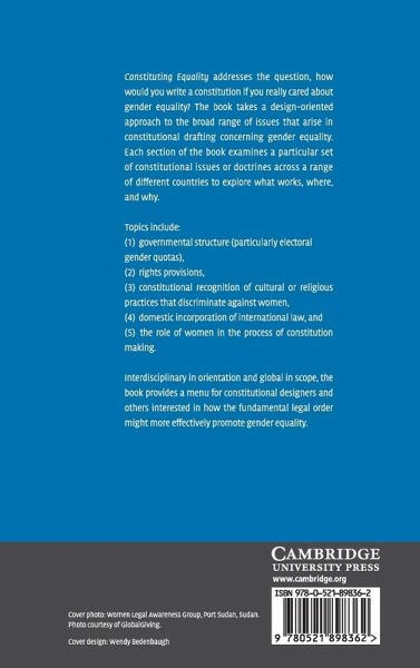 Constituting Equality addresses the question, how would you write a constitution if you really cared about gender equality? The book takes a design-oriented approach to the broad range of issues that arise in constitutional drafting concerning gender equality. Each section of the book examines a particular set of constitutional issues or doctrines across a range of different countries to explore what works, where, and why. Topics include: governmental structure (particularly electoral gender quotas); rights provisions; constitutional recognition of cultural or religious practices that discriminate against women; domestic incorporation of international law; and the role of women in the process of constitution making. Interdisciplinary in orientation and global in scope, the book provides a menu for constitutional designers and others interested in how the fundamental legal order might more effectively promote gender equality.