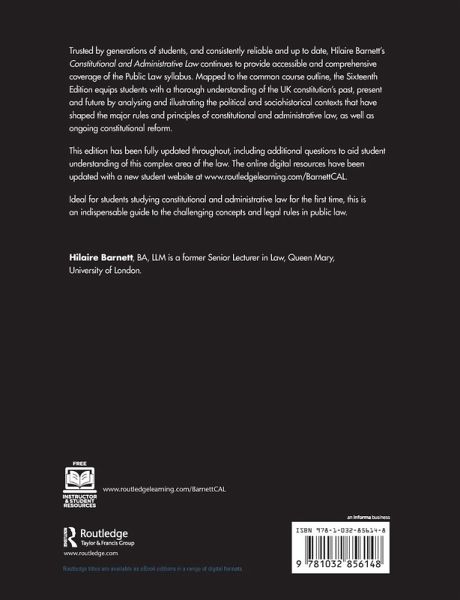 The Sixteenth edition equips students with a thorough understanding of the UK constitutionâ s past, present and future by analysing and illustrating the political and socio-historical contexts that have shaped the major rules and principles of constitutional and administrative law, as well as ongoing constitutional reform.