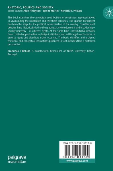 This book examines the conceptual contributions of constituent representatives in Spain during the nineteenth and twentieth centuries. The Spanish Parliament has been the stage for the political modernisation of the country. Constitutional debates have historically led to the gradual acknowledgement and broadening - usually unevenly - of citizens' rights. At the same time, constitutional debates have created opportunities to design institutions and settle legal mechanisms to enforce rights and distribute state resources. The book identifies and analyses rhetorical and conceptual innovations produced in such debates from a historical perspective.