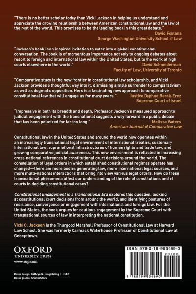 Constitutional Engagement in a Transnational Era explores how transnational phenomena affect our understanding of the role of constitutions and of courts in deciding constitutional cases. In it, Vicki Jackson looks at constitutional court decisions from around the world, and identifying postures of resistance, convergence or engagement with international and foreign law.