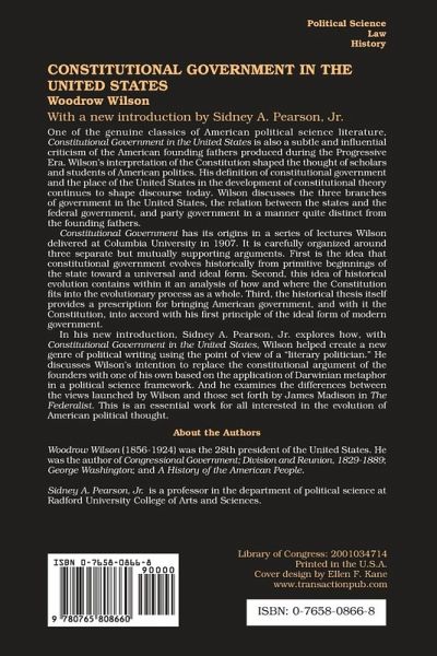 One of the genuine classics of American political science literature, Constitutional Government in the United States is also a subtle and influential criticism of the American founding fathers produced during the Progressive Era