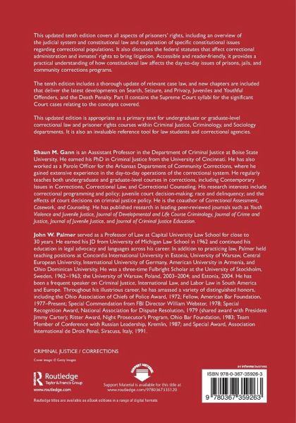 This updated tenth edition covers all aspects of prisoners' rights, including an overview of the judicial system and constitutional law and explanation of specific constitutional issues regarding correctional populations. It also discusses the federal statutes that affect correctional administration and inmates' rights to bring litigation. Accessible and reader-friendly, it provides a practical understanding of how constitutional law affects the day-to-day issues of prisons, jails, and community corrections programs. The tenth edition includes a thorough update of relevant case law, and new chapters are included that deliver the latest developments on Search, Seizure, and Privacy, Juveniles and Youthful Offenders, and the Death Penalty. Part II contains the Supreme Court syllabi for the significant Court cases relating to the concepts covered. This updated edition is appropriate as a primary text for undergraduate or graduate-level correctional law and prisoner rights courses within Criminal Justice, Criminology, and Sociology departments. It is also an invaluable reference tool for law students and correctional agencies.