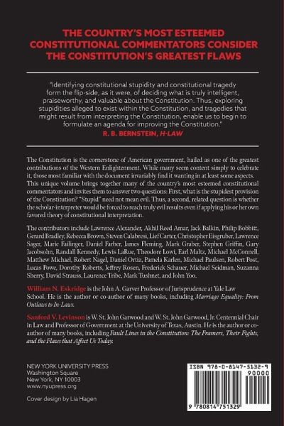 The country's most esteemed constitutional commentators consider the Constitution's greatest flaws The Constitution is the cornerstone of American government, hailed as one of the greatest contributions of the Western Enlightenment. While many seem content simply to celebrate it, those most familiar with the document invariably find it wanting in at least some aspects. This unique volume brings together many of the country's most esteemed constitutional commentators and invites them to answer two questions: First, what is the stupidest provision of the Constitution? "Stupid" need not mean evil. Thus, a second, related question is whether the scholar-interpreter would be forced to reach truly evil results even if applying his or her own favored theory of constitutional interpretation. The contributors include Lawrence Alexander, Akhil Reed Amar, Jack Balkin, Philip Bobbitt, Gerard Bradley, Rebecca Brown, Steven Calabresi, Lief Carter, Christopher Eisgruber, Lawrence Sager, Marie Failinger, Daniel Farber, James Fleming, Mark Graber, Stephen Griffin, Gary Jacobsohn, Randall Kennedy, Lewis LaRue, Theodore Lowi, Earl Maltz, Michael McConnell, Matthew Michael, Robert Nagel, Daniel Ortiz, Pamela Karlen, Michael Paulsen, Robert Post, Lucas Powe, Dorothy Roberts, Jeffrey Rosen, Frederick Schauer, Michael Seidman, Suzanna Sherry, David Strauss, Laurence Tribe, Mark Tushnet, and John Yoo.